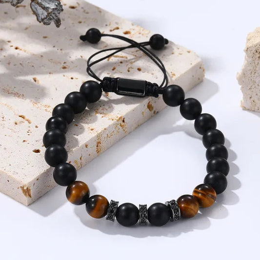 URBAN TIGER férfi ásvány karkötő - matt fekete achát és tigrisszem állítható méret