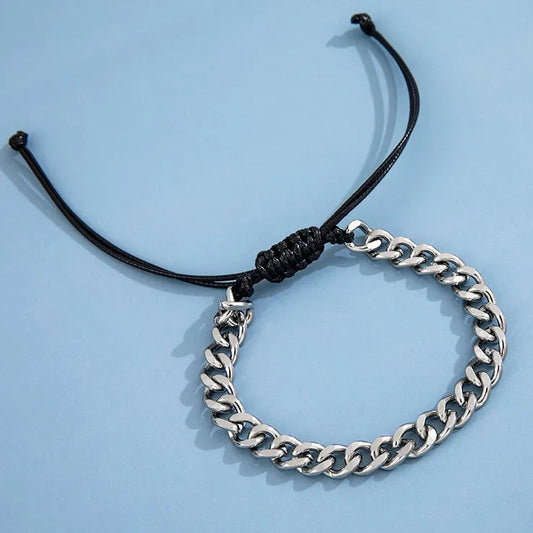 RAMOS férfi nemesacél láncos karkötő állítható zsinórral ezüst színben